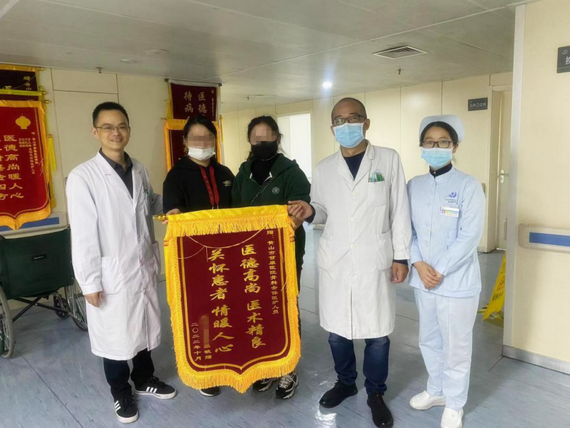 ▲吴阿姨为骨科医护人员送来锦旗